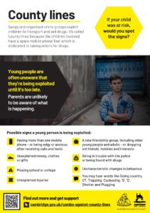 Vulnerable adults who use drugs, are in financial difficulty or have mental health problems are at greatest risk of being exploited by county lines gangs. These adults are groomed through offers of ‘free’ drugs, causing them to accumulate debts which can only be paid off by participating in county lines activities (also known as debt bondage).