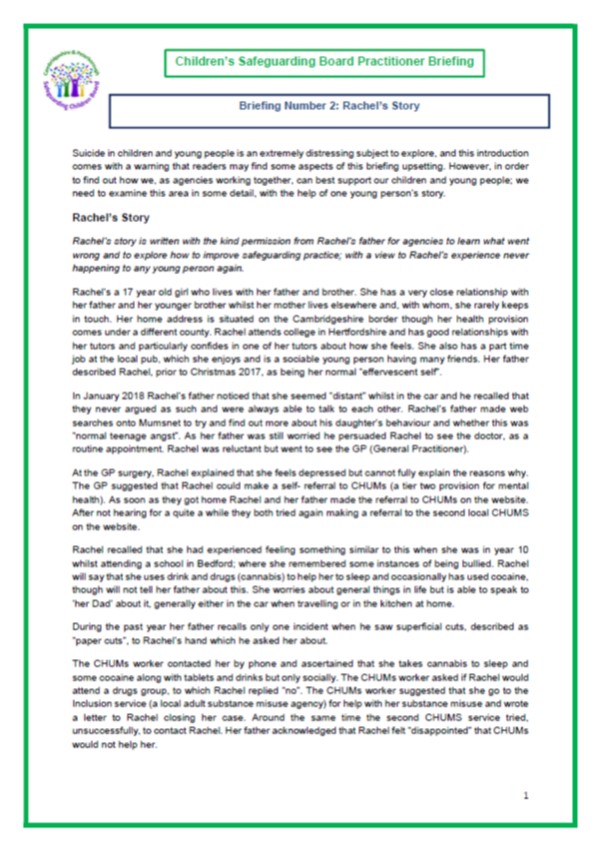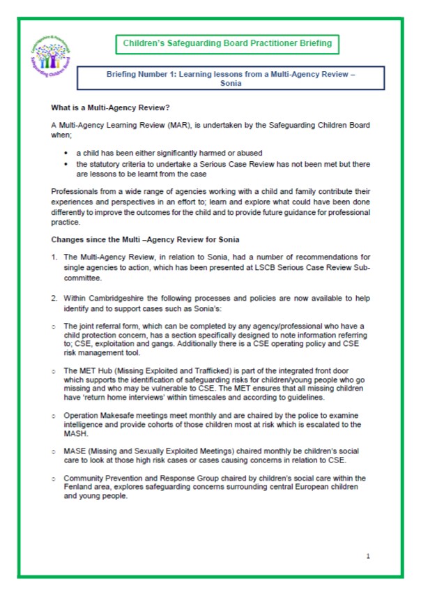 Please see below every Child Safeguarding Practice Review published by the Cambridgeshire and Peterborough Safeguarding Children Board in the past 12 months