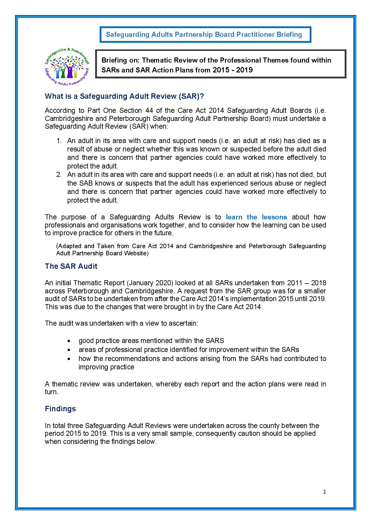 Breifing SARs 2020 Thematic Review…