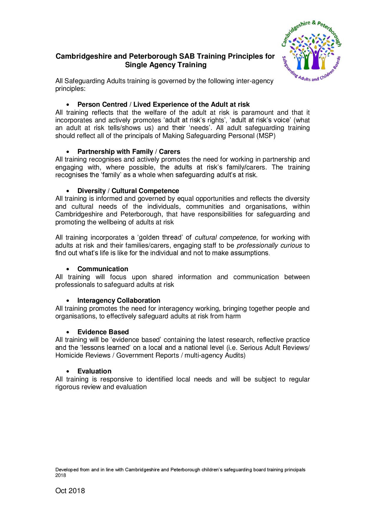 • Cambridgeshire and Peterborough Multi-Agency Safeguarding Policy